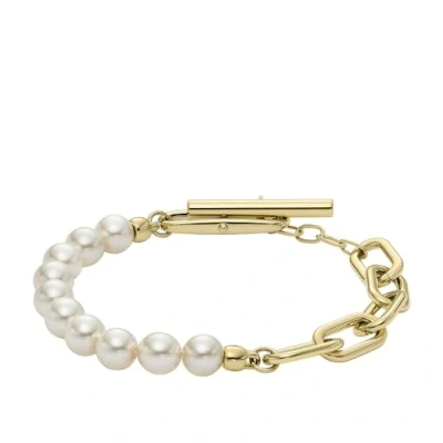 Fossil Women's Heritage Pearl D Link Gold Tone Stainless Steel Chain Bracelet, JF04729710