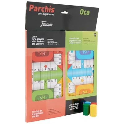 Parcheesi for 4 players and Game of the Goose. Dimensions: 33 x 33 cm Contains chips Memory development, concentration, strategy, Manufacturer: Fournier