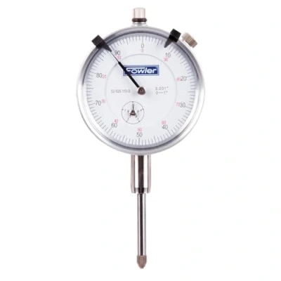Precision Measurements: Features a 2.25" diameter dial with 0.001" graduations Easy Readings: Microfine graduations in black for 0-100 continuous readings and red for 0-50-0 balanced readings; movement mounted independently from the case on a rigid supporting plate, ensuring perfect and permanent alignment Measuring Pressure: Supplied with lug backs positioned in 90° increments; Group II and III gages measure with approximately 2oz. of pressure Durable Construction: Spindle rack is made of hardened stainless steel and features a carbide ball contact point; brass cases and hard brass gear wheels prevent wear; pinions of steel hardened, tempered, and lapped on teeth High-Quality Tool: Features extra-long springs for uniform pressure through entire travel of spindle with a knurled bezel that easily adjusts 360°; full 1-year warranty offered by Fowler High Precision