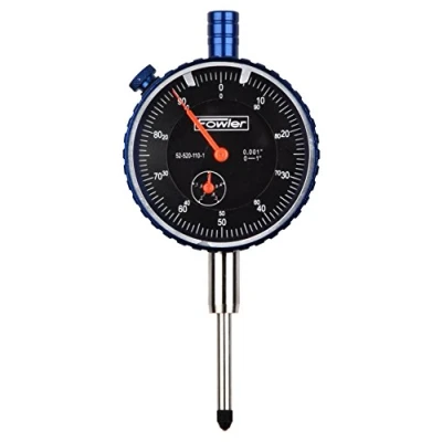 in Precision Measurements: Features a 2.25" diameter dial; reads in 0.001" graduations; meets AGD Group 2 specifications Easy Readings: Microfine graduations in white for 0-100 continuous reading; includes tolerance markers Durable Construction: Contact points are made of solid carbide; the carbide ball contact point provides durability and long life Set Includes: A Fowler dial indicator with NIST Certificate of Calibration