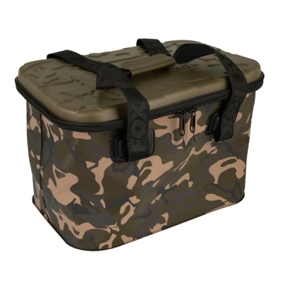 Fox Aquos Camo Bag 20L - Capacity: 20L - Dimensions: 37 × 22 × 27.5cm - Material: durable, waterproof EVA - 1 mm thick walls - 1.5mm thick heavy-duty base - Overlapping khaki lids - High quality 10mm zippers - Polyester carrying straps - Ergonomic zippers - Unique Fox Camo design - Many uses The Fox Aquos Camo bag series is made of durable, waterproof EVA material and is suitable for many uses, such as mixing bait or storing clothing, cookware or fishing tackle. The bags feature a unique Fox Camo design and feature 1 mm thick walls and a 1.5 mm thick heavy-duty base for added strength. The bags close perfectly thanks to overlapping khaki lids and high-quality 10mm zippers. The bags also feature polyester carrying straps and ergonomic zippers for even more comfort!