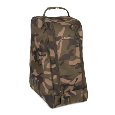Fox Camolite Wader/Boot Bag - Handy bag for easy transport of your wading suit or groin boots - Dimensions: 25.5cm x 49cm x 25cm - Material: outer 100% polyester, lining 100% polyester, filling 100% polyethylene - Hard-wearing and water-resistant 500D treated polyester material - Padded polyester camo handles - Unique Fox Camo design - Double access zips - Mesh storage pocket Stylish bag to easily transport your wading suit and/or groin boots. Easy access through 2 zippers so there is no cramming. Made of hard-wearing waterproof material, which is easy to keep clean and long lasting.