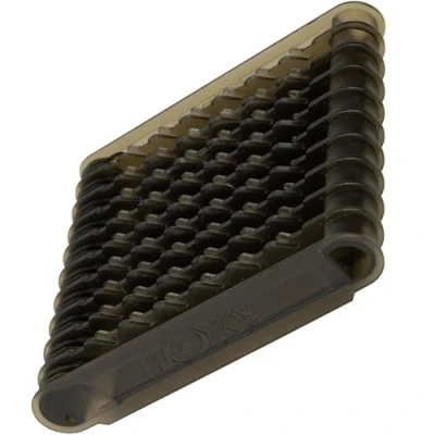 Fox’s Edges Leader Rack provides space for storing all types of pre-tied leaders. To be attached using the metal pin or the molded ‘hood’ sections. These Racks have room for up to 10 pre-tied leaders, including lead system components such as lead clips and helicopter beads and sleeves.