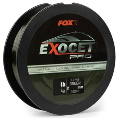 Fox Exocet Pro Low Vis Green - Metres: 1000m - Colour: green - Updated and improved mono main line - Latest monofilament technology - Perfect for long distance casting - Super supple - Very abrasion resistant - Good max pull on the knot - Sinking New from Fox, the improved Exocet Pro Mono, finished in ‘low vis’ green. Thanks to the latest technology Exocet Pro has become the ultimate mono line for long distance casting. Furthermore, the line is super soft and supple, it has a high abrasion resistance and is sinking. Perfect for use as a main line during carp fishing! Available in the following variants: 0,309mm: 13lb (5,90kg) 0,331mm: 16lb (7.27ks) 0.350mm: 18lb (8.18kg) 0.370mm: 20b (9.09kg) 0.400mm: 23lb (10.45kg)