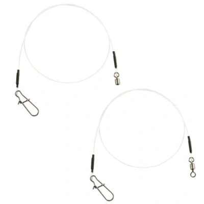 Fox Rage Strike Point Ready Made Fluorocarbon Leader - Ready made fluorocarbon leaders - Choice of several options - Length: 40cm - Packed in pairs - Equipped with Surefit snap links - High knot strength and abrasion resistance! The Fox Rage Strike Point Ready Tied Fluorocarbon Leaders are designed for the predator angler looking for reliability and convenience. These ready-tied leaders are perfectly crimped and feature the reliable Surefit snaps, eliminating the need to tie them yourself. With excellent knot strength and high abrasion resistance, these fluorocarbon leaders are ideal for pike fishing. They provide the necessary protection from sharp teeth while remaining inconspicuous in the water, making them a must-have for any pike angler. You have a choice of: - 1.10mm | 100lb - 0.90mm | 79.37lb