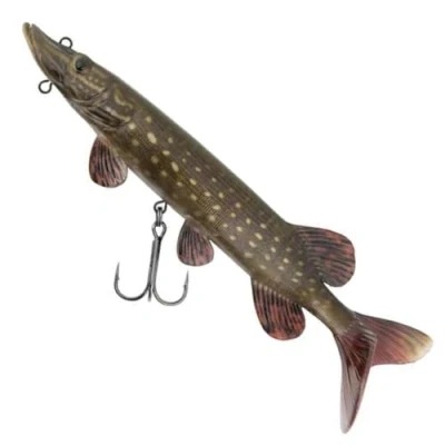 The Fox Rage Ultra Naturals Replicant Pike has a life like pike body shape and an ultra-realistic finish. It has an intense paddle tail action which pike find hard to resist. The Replicant Pike features an internal harness fitted with belly treble hook. Swimming depth can be adjusted by using the chin loop which is perfect for adding our Tungsten Nose Weights (sold separately).