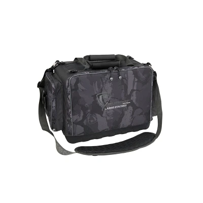 Fox Rage Voyager Camo Stacker L - Including: 1 x Large Deep & 4 x Large Shallow & 2 x Small Tackle Boxes - Material Outer shell: 100% Polyester. Lining: 100% Polyester. Filling: 100% Polyethylene. Bottom: EVA - Dimensions: 48 × 30 × 24cm - Fully fitted with tackle boxes - Fox Rage Camo design - Heavy-duty camo zippers - 3D padded shoulder strap - EVA handles - EVA bottom - Pocket on the back for tools - Velcro pliers holder - Extendable rain cover The Fox Rage Voyager Camo Stacker L is a spacious bag that comes with 1 Large Deep, 4 Large Shallow and 2 Small Tackle Boxes. The bag features the Fox Rage Camo print giving it a neat dark finish. The 3D padded shoulder straps make it very comfortable to carry. The top is fitted with an EVA handle, so you can easily take it in your hand when loading or unloading. The bottom is made entirely of hard EVA, so you can put it down and not worry about it getting wet. Also, the stacker features a pull-out rain cover to keep your gear dry even in adverse weather. The exterior has both Velcro pliers holder and a pocket for accessories and tools. If you’re looking for serious storage, this is the bag for you!