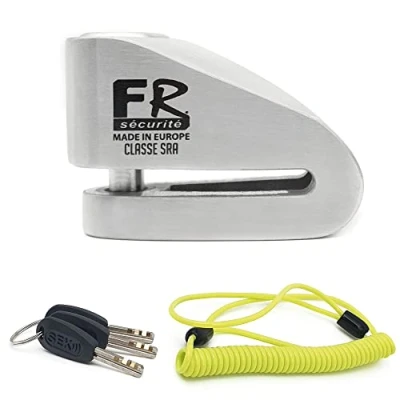 PRACTICAL anti-theft high security disc for the brake disc and locks the wheel making it impossible to complete return. It sits quickly and can be worn comfortably thanks to its compact size. Includes a reminder cable to place from the lock to the handlebar to avoid forgetting that it is on. APPROVED Disc lock tested against saw, shearing, mall, lever, etc. in independent homologation laboratories, SRA certification valid for insurers. Very robust anti-theft safety made of stainless steel with elegant design and theft proof security technology. Disc lock with SEK technology. Fluid opening and locking operation. Includes 3 safety keys. DOUBLE CLOSE Double locking security system with locking mechanism of 10mm steel latch shaft on two sides maximizing anti-theft security. Warranty European Manufacturing FR SÉCURITÉ Guarantee of security and customer service at all times with many years' experience in manufacturing anti-theft products., Weight: 1.5652820602 Pounds, Manufacturer: FR Sécurité