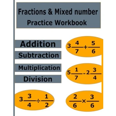 Fractions & Mixed Numbers Practice Workbook: Basic Math Proper and Improper Addition, Subtraction, Multiplication Division Exercises for Kids Adults