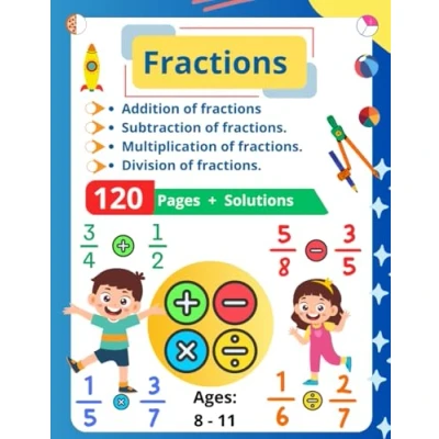 Fractions Workbook: Addition, Subtraction, Multiplication, Division Exercises with Answer key for Ages 8 11