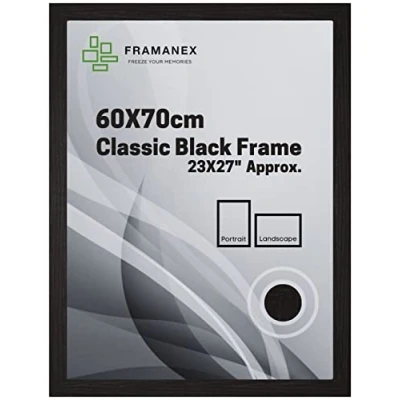 FRAMANEX Classic Picture Poster Frame, 60 X 70cm Black Wood Finish, Portrait, Landscape Display Rectangle 23 27 inches Frame (Black Frame)