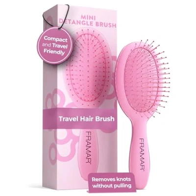 PERFECT MINI HAIR BRUSH – This small hair brush packs full-size performance into a compact design. The Framar mini hair brush slips easily into your purse, gym bag, or carry-on, so smooth, tangle-free hair is always within reach. PAINLESS DETANGLING – Flexible bristles on this detangle hair brush glide effortlessly through wet or dry hair. Reduce tugging, breakage, and knots for a pain-free brushing experience every time. TRAVEL HAIR BRUSH ESSENTIAL – Lightweight and portable, this mini hairbrush is your go-to travel hair brush. Perfect for vacations, work trips, or quick touch-ups between meetings or after the gym. ALL HAIR TYPES WELCOME – Designed for hairbrushes for women and men alike, this detangling mini hairbrush works wonders on straight, curly, thick, or fine hair—leaving strands smooth, shiny, and healthy-looking. YOUR PURSE ESSENTIAL – A stylish and functional small hair brush you’ll never want to leave behind. This mini hair brush keeps you polished and put-together wherever life takes you. PRETTY IN PINK – This chic mini hairbrush comes in a trendy matte pink finish that’s as fashionable as it is functional, adding a pop of style to your collection of travel hairbrushes for women.