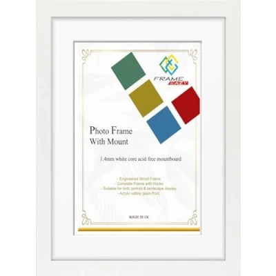 Frame EAZY Modern White Photo Picture Poster Certificate Frames with Mount 80x60 For 70x50cm