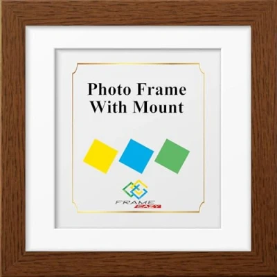 Frame EAZY Square Walnut Photo Picture With White Mount Comes Safe Perspex Front & Wall Hanging Hooks 9"x9" Pic Size 5"x5"