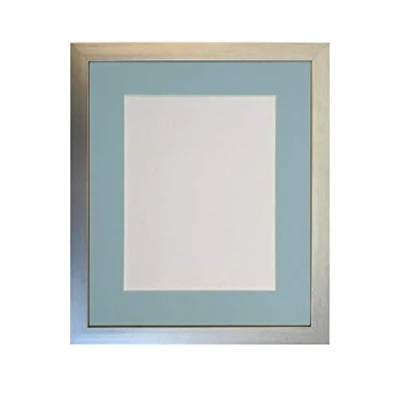 FRAMES BY POST 0.75 Inch Silver Picture Photo Frame with Blue Mount A3 Image Size A4 Plastic Glass