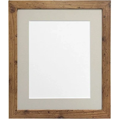 FRAMES BY POST 25mm wide H7 Rustic Oak Picture Photo Frame with Light Grey Mount 12"x10" for Pic Size 10"x8"