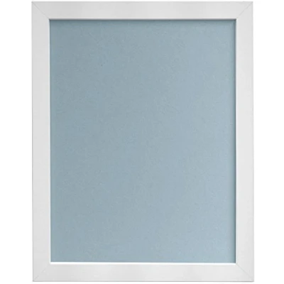 H7 White Picture Photo Frame 25mm Wide with Blue Backing Board Quality backing board bevel cut on on a White core board UK Manufacture All of our acid free mounts have an image size that is 3mm smaller all the way round. MDF wrapped moulding with Styrene (Plastic Glass) and Backing Board
