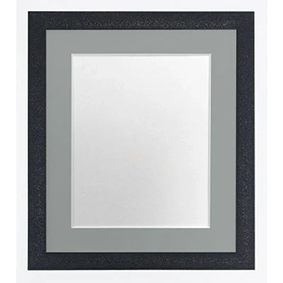 FRAMES BY POST Glitz Black Picture Photo Frame with Dark Grey Mount 7 x 5 Image Size 3.5 inch Plastic Glass