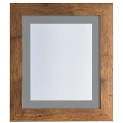 FRAMES BY POST London Picture Photo Frame, Vintage Wood with Dark Grey Mount, 36 x 24 Image Size 30 20 Inches