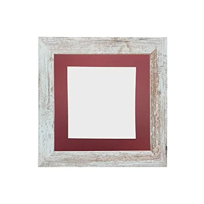 Metro Frame Distressed White with Red Mount 20 x 20 Inch Image Size 40 x 40 cm Plastic Glass Frame is complete with plastic glass and MDF backing board and mount, ready to hang landscape or portrait. Size refers to the Image size not the overall frame size The frame moulding is made from mdf The frame moulding size is 40mm wide x 16mm deep manufactured in the UK.