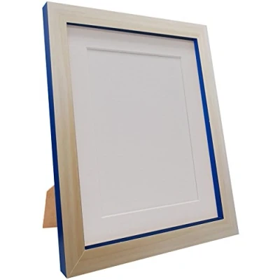 FRAMES BY POST Plastic Glass Magnus Picture Photo and Poster Frame, Recycled, Beech Cobalt Blue with White Mount, Size A1/Image A2