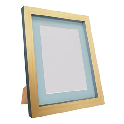 FRAMES BY POST Plastic Glass Magnus Picture Photo and Poster Frame, Recycled, Beech Dark Grey with Blue Mount, Size A2/Image A3