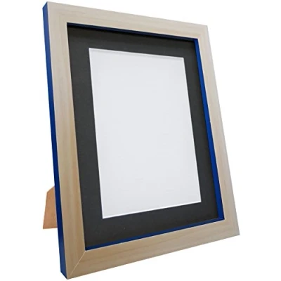 FRAMES BY POST Plastic Glass Magnus Picture Photo Frame, Recycled, Beech and Cobalt Blue with Black Mount, 30 x 24 Inch/Image Size 18 Inch