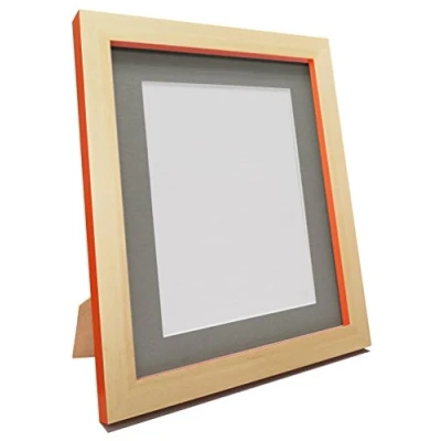 FRAMES BY POST Plastic Glass Magnus Picture Photo Frame, Recycled, Beech and Orange with Dark Grey Mount, 24 x 18 Inch/Image Size 12 Inch