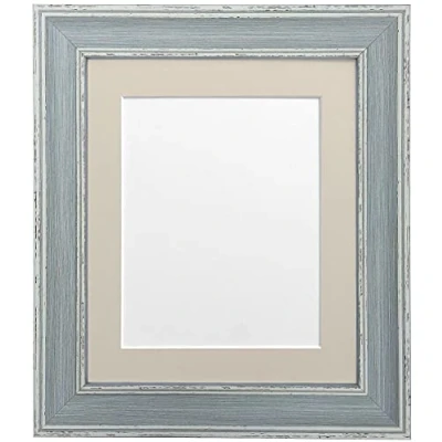 FRAMES BY POST Scandi Vintage Picture Photo Frame, Recycled Plastic, Distressed Blue with Light Grey Mount, 8 x Image Size 5 Inch