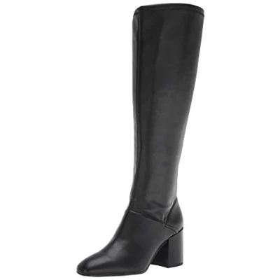Franco Sarto Women's Tribute Toilet Knee High Boot, Black Faux Leather with Wide Calf, 5.5 UK