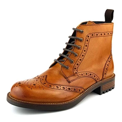 Frank James Camden Leather Tan Brown Burnished Brogue Mens Lace Up Boots Size UK 8
