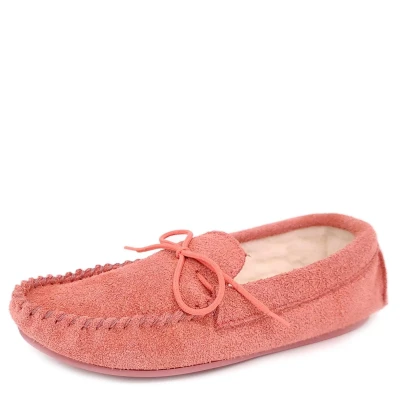 Frank James Suede Wool Lined Ladies Pink Moccasin Slippers Made In England
