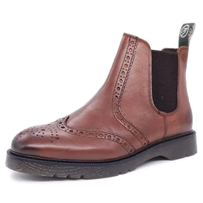 Mens Frank James Brogue Leather Upper Dealer Boots. These Brogue chealsea boots are a durable yet fashionable pair that are fit for all occasions - smart or casual. With a cushioned sole these boots are also a comfortable and hard wearing fit. Available in Black, Bordo Brown or Tan in UK 6-12