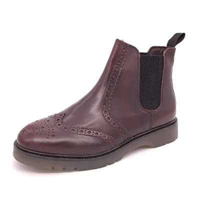 Mens Frank James Brogue Leather Upper Dealer Boots. These Brogue chealsea boots are a durable yet fashionable pair that are fit for all occasions - smart or casual. With a cushioned sole these boots are also a comfortable and hard wearing fit. Available in Black, Bordo Brown or Tan in UK 6-12