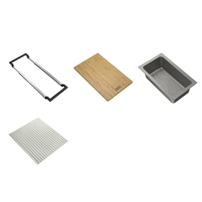 Thanks to the universal and innovative system, your sink will turn into an exceptionally convenient workspace, but at the same time it will be a stylish element in your kitchen. All-In was created to save you time and space! Now you can have everything in one place, always at hand. In this set you will find: a versatile telescopic rail that fits sinks up to 54 cm in size; a bamboo chopping board that you can safely rest on the rail; a large draining insert secured with technology that limits the development of bacteria and microorganisms. You can use this insert as a colander, drainer for cutlery and kitchen utensils or as a container for peelings; a foldable, high-temperature resistant silicone mat, which. Thanks to its corrugated surface, can also be used as a drainer., Weight: 7.275254646 pounds, Manufacturer: Franke