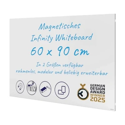 Universal whiteboard: magnetic dry or damp erase board; ideal as a board for use as a memo board, bulletin board, weekly planner or for presentations in the office, home office, school Wide applications: the writing board does not have a frame, making it easy to assemble and expand; ideal for meeting rooms or community areas in the office High-quality materials: the painted steel surface is UV hardened for a high-quality writing surface; ideal for jotting notes, pinning reminders, visualizing projects & processes Easy to install: the sophisticated mounting system allows for effortless installation as well as extension with several Franken Infinity whiteboards; either portrait or landscape format Box contents: Franken Infinity writing board, without frame, 90 x 60 cm, including mounting material, SCM6102