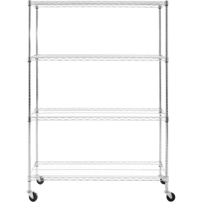 General description The Frankfurt shelf unit incorporates four storage and display tiers into its structure, featuring a wireframe construction that provides an unobtrusive aesthetic. Made from strong metal, it has a sleek chrome coating that gives it a reflective finish. Technical specifications Material: Strong metal Finish: Chrome coating Number of tiers: 4 Usage Ideal for storage and display purposes Easy to move with lockable caster wheels
