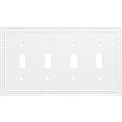 The classic styling of the classic beaded wall plate collection is inspired by the detailed metal works of ages past The Pure white finish coordinates with white outlets, switches, and trim for a bright, clean look. Also looks great with neutral color walls and woodwork Machine screws in a matching finish are included for easy installation Made of solid Zinc for style and durability Product backed by manufacturer's limited lifetime warranty, Weight: 0.3397 pounds, Manufacturer: Liberty Hardware Manufacturing Corporation