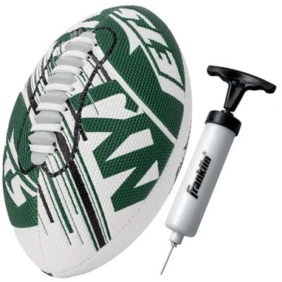NEW YORK JETS FOOTBALL: This exclusive mini football is unlike any other football as it is specially designed with embossed logos for a rare look and feel! PERFECT SIZE: This 8.5" mini football is the ideal size to fit in a young players hands so your future champ can catch and throw down field like the Pros! EXCLUSIVE SPACELACE TECHNOLOGY: This specially designed lacing system guides fingers to the correct position on the laces to make throwing tight spirals a breeze for kids of all ages! FEATURES AIR TECH COVER: This soft cover promotes confidence with younger players as they can easily grip the football which makes it perfect for tailgates, the beach or backyard barbecues! NFL OFFICIAL: This 8.5" football is officially licensed by the NFL, featuring team specific logos and colors!