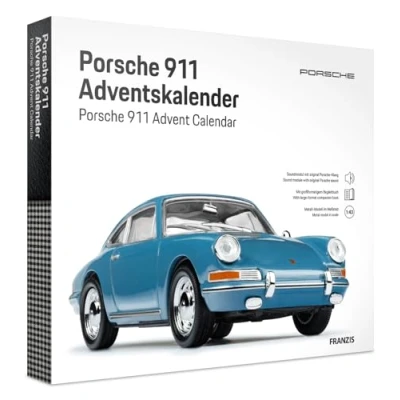 The complete package for all Porsche fans: in 24 steps to the enamel blue Porsche 911 under the Christmas tree, according to the scale and including base and diorama approx. 20 x 15 x 10 cm Detailed vehicle model: 6-piece kit with metal body for inserting and screwing, without gluing Loving details: 24 reversible boxes made of environmentally friendly cardboard create a large, attractive motif on the front and back and contain small surprises for the Porsche fan Impressive effects: sound module integrated into a dynamic steep curve with original engine sound makes the model vehicle come alive at the touch of a button. Exclusive accessories: high-quality, large-format accompanying book, written in collaboration with the Porsche Museum. Includes the history of the Porsche 911 from 1963 to the present day, Manufacturer: FRANZIS GmbH