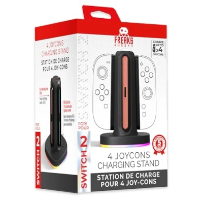 Charge up to 4 Switch 2 Joycon controllers simultaneously. Fast charging time of 2h30 . Sleek RGB light bar : Choose from 10 customizable lighting modes. Included: 1-meter USB C/USB C cable. Built-in overvoltage protection : DC 6.7 V Overcurrent protection : 1500mA Short-circuit protection : 400mA per port, Platforms: Nintendo Switch 2
