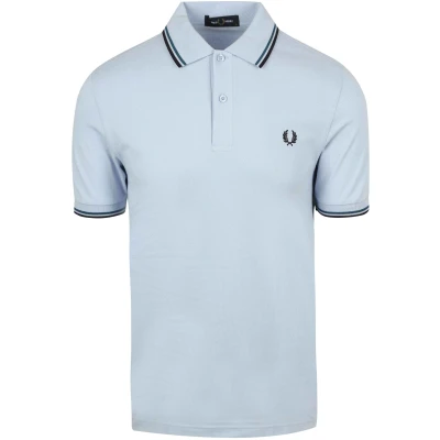 Fred Perry M3600 Polo Shirt Light Blue Y58 Fred Perry M3600 Polo Shirt Light Blue Y58 in the color Light blue and Blue with a fit Slim-Fit is made from Cotton with a Brand logo and Plain design and Short sleeves.