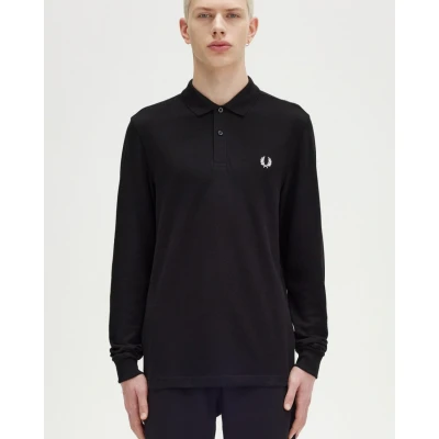 Fred Perry Mens Long Sleeve Plain Signature Polo Shirt Black Size X Large