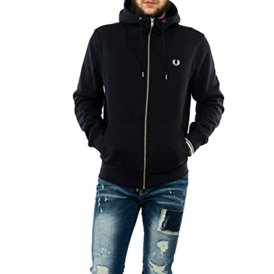 Fred Perry Mens Zip Through Hoody Navy Cotton Size Large