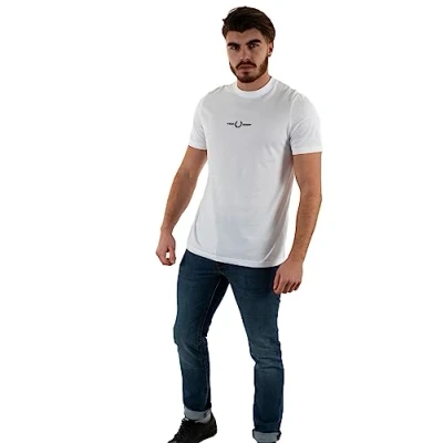 SpartooFred Perry EMBROIDERED T-SHIRT men's T shirt in White