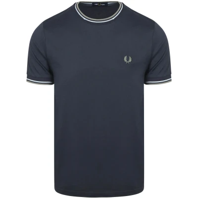 Fred Perry Twin Tipped T Shirt Navy Z47 Fred Perry Twin Tipped T Shirt Navy Z47 in de kleur Dark Blue en Blue met een pasvorm Modern-Fit is gemaakt van Cotton met een Plain dessin en Short sleeves.