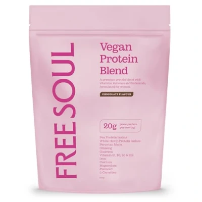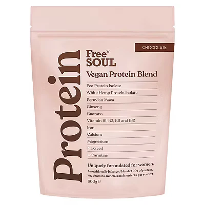Free Soul Vegan Protein Powder Formulated for Women 600g 20g with Added Nutrients Gluten & Soy Plant Based Nutrition Shake Pea and Hemp Isolate (Chocolate)