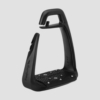 More Stability, More Grip. The Soft'Up Classic+ stirrup offers a 27% wider platform. It has the same technical features as the Soft'Up Classic with a wider platform for greater grip, stability and comfort. Technology & Safety The Soft'Up Classic+ stirrup is designed with a straight eye that subtly guides the ball of the foot inwards, ensuring optimum position and stability. The centre of gravity is shifted forward, tilting the floor to help the heels drop. The result of a collaboration between Pénélope Leprévost and the famous Italian designer Pininfarina, these stirrups harmoniously combine functionality and elegance. The outer branch of the stirrup is made from Elastollan®, a flexible material that deforms and allows the leg to open, making it easier to release the foot in the event of a fall. Shock Absorption & Super Grip Single Branch Technology - Optimal Shock Absorption Soft'Up Classic+'s single-branch spring steel technology reduces the force exerted on each stirrup by a factor of three, thus reducing the pressure on the rider's joints and taking the strain off the horse's back. The Soft'Up Classic+ stirrup features Freejump Shock Absorption technology thanks to its single-branch design. This guarantees optimum shock absorption and exceptional comfort. The Soft'Up Classic+'s ultra-wide ergonomic floor and rounded, cramped rear edge reduce pressure points on the arch of the foot. Grip & Durability Equipped with a super grip, the Soft'Up Classic+ offers optimum grip, reinforced by removable and replaceable steel studs. The integration of fibreglass in the floor guarantees unrivalled durability.