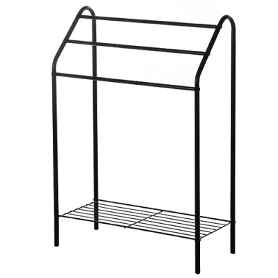 Freestanding Towel Rack With Bottom Shelf (Black)