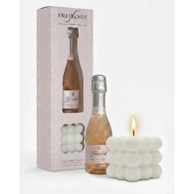 Freixenet Prosecco Gift Set Italian Sparkling Wine, Rose 20cl & Bubble Shaped Luxury Candle Pamper Gifts for Women, Ladies, New Mum Mini Alcohol, Wine Gifts, Valentines, Mothers Day